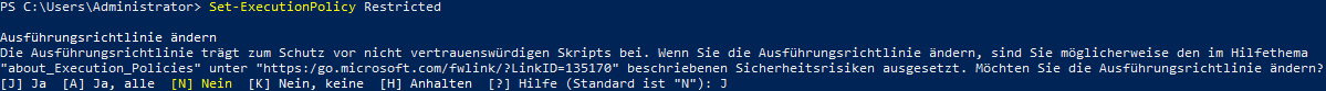 Und die Execution-Policy zurücksetzen und auch wieder mit Ja bestätigen.